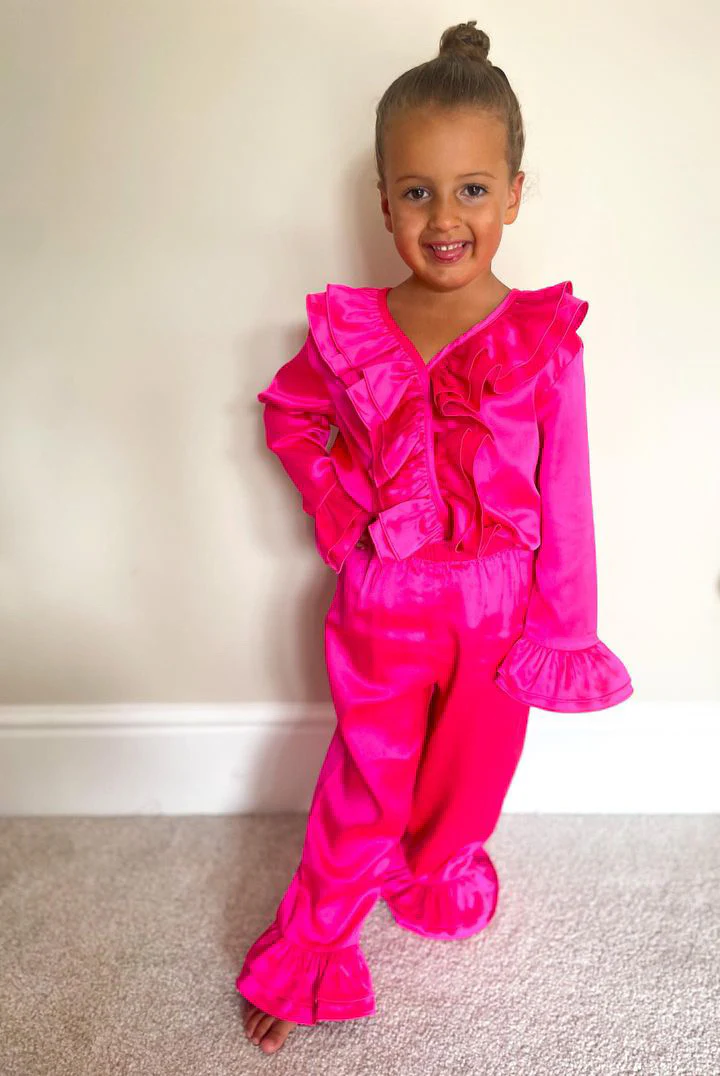 Girls Pink Luxe Satin Frill Trouser Set